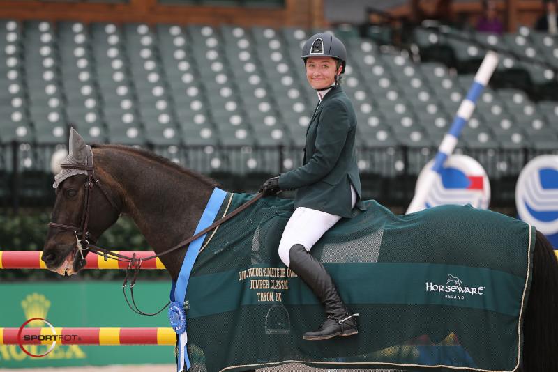 Kaitlin Porath of Charlotte, NC, and her own Breaux earned the tricolor in the Amateur-Owner Hunter 3’3″ 18-35 Division ahead of Alliah Kassem of Fayetteville, GA, and C Beyond, owned by Bijoux Show Stables, who earned reserve champion.