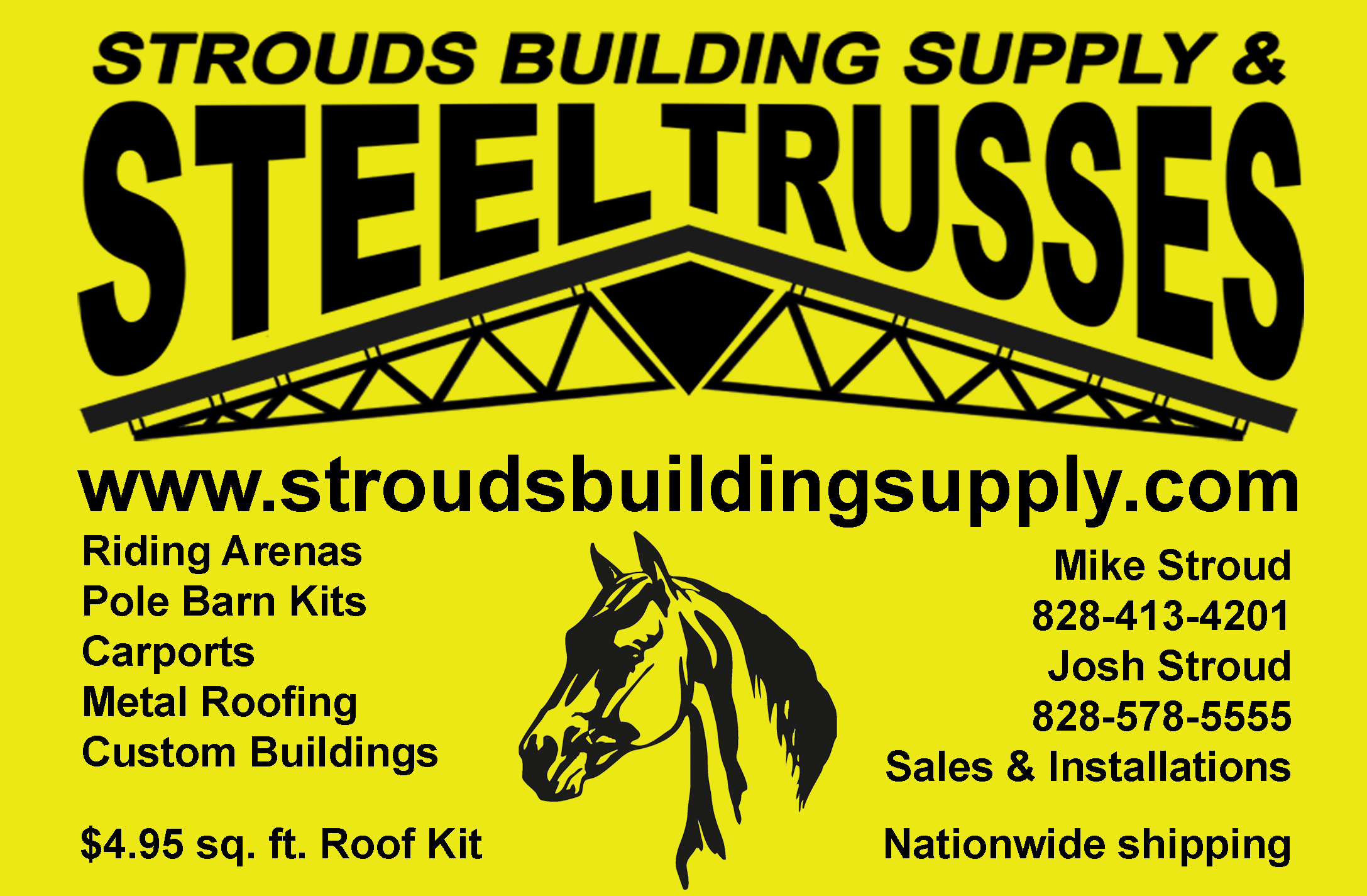 Stroud's offers the best prices on building kits, riding arenas, carports, pole barns, metal roofing and siding, and steel trusses. You'll love our uncompromising customer service. We ship nationwide.